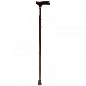 Трость телескопическая, складная четырех секционная изготовлена из трубок алюминиевого металлического профиля.Имеет 5-ти ступенчатую регулировку по высоте с помощью надежного кнопочного фиксатора.Окрашена с применением порошкового напыления.Цвет-бронза. Устойчива к коррозии.Т-образная рукоятка из дерева.Рукоятка обеспечивает прочность ее захвата рукой и отсутствие скольжения при захвате.Опорная насадка резиновая, прочная, не скользящая, сменная.Конструкция обеспечивает комфорт и устойчивость.Дополнительная информация по товару