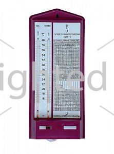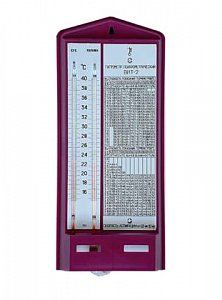 Термометр-гигрометр для точного измерения температуры и относительной влажности воздуха в помещении ВИТ-2. Эту модель более предпочтительно использовать, если температура в месте установки прибора в течение всего периода измерений относительной влажности не снижается ниже 15-20 °C (например, зимой) и не превышает 35-40 °C (летом).Применяется для измерения относительной влажности воздуха и температуры в складских помещениях, материальных комнатах, шелковичных, тепличных, птицеводческих хозяйствах. Такие приборы можно встретить в музеях, больницах, общественных местах, погребах, овощехранилищах, складах и других местах, где необходим строгий контроль относительной влажности. Диапазон измерения температуры сухого термометра от +15 °C до +40 °C.Диапазон измерения относительной влажности в зависимости от температур: от 20% до 90% при температуре: от +26 °C до +40 °C. от 40% до 90% при температуре: от +23 °C до +26 °C. от 54% до 90% при температуре: от +20 °C до +23 °C. Термометрическая жидкость ВИТ-1 и ВИТ-2 - толуол; Цена деления: 0,2 °C. Высота 290 мм, ширина 120 мм, толщина 50 мм . Межповерочный интервал: 2 года Индивидуальная коробка. Транспортировка строго вертикально (особенно, зимой)! На пластмассовом основании закреплены два термометра, температурная шкала, психрометрическая таблица и стеклянный питатель. Один из термометров остаётся сухим, капилляр другого термометра - влажный. Утолщение капилляра «влажного» термометра, где находится основной объём термометрической жидкости (это не ртуть, а вполне безобидный толуол) помещёно в специальный трубчатый тканевый материал (фитиль), который хорошо впитывает воду. Второй конец этого материала помещают на несколько сантиметров в открытый конец изогнутой стеклянной трубки (питатель), в которую налита обычная вода (предпочтительно, дистиллированная).Весь материал оказывается смоченным и, под воздействием циркуляции воздуха, вода испаряется и охлаждает колбу капилляра. За счёт этого показания «сухого» и «влажного» термометров отличаются. Это и является ключевым моментом для определения относительной влажности воздуха. Далее остаётся только считать показания «сухого» термометра и определить разницу показаний между «сухим» и «влажным» термометром.Относительную влажность воздуха можно найти в психрометричекой таблице, прикреплённой прямо на корпусе прибора, в точке пересечения текущей температуры «сухого» термометра и разницы температур между «сухим» и «влажным» термометром. Аспирация воздуха, или скорость воздушных потоков, в помещении при измерении относительной влажности гигрометрами ВИТ-1 или ВИТ-2, не должна превышать 1 м/с, иначе разница показаний «сухого» и «влажного» термометра будет больше и вы получите по таблице заниженную относительную влажность воздуха.Отличия психрометров ВИТ-1 и ВИТ-2 заключаются в диапазоне измеряемой температуры, и, соответственно, относительной влажности: ВИТ-1 измеряет температуру в пределах от 0 до + 25 ºC, и относительную влажность в температурном диапазоне от +5 до +25 ºC. ВИТ-2 – температуру от +15 до +40 ºC, и относительную влажность от при температуре от +20 до +40 ºC.Дополнительная информация по товару