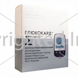 Глюкометр Глюкокард Сигма;литиевая батарейка CR2032;тест-полоски Глюкокард Сигма №10;устройство для прокалывания Multi-Lancet Device,ланцеты Multilet №10;чехол;руководство по эксплуатации.Дополнительная информация по товару