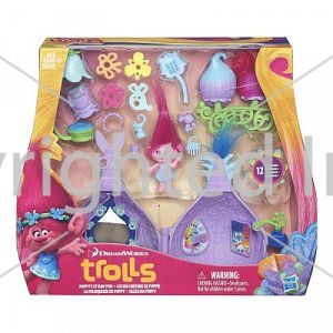 Игровой набор "Салон красоты Троллей" от Hasbro включает в себя не только саму "постройку", но и небольшую фигурку сказочного персонажа - очаровательной девчушки по имени Розочка с шикарной копной реалистичных волос, которые можно расчесывать, создавая для нее различные креативные прически! Само строение представляет собой полноценный салон красоты для троллей с зеркальцем, туалетным столиком и всеми прочими характерными атрибутами.