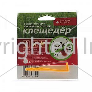 Устройство для извлечения клещей - это специальное приспособление индивидуального применения, разработанное для эффективного удаления иксодовых клищей из кожи человека и домашних животных. Удаление клеща производится полностью, не отрывая и не оставляя головку, безболезненно, за несколько секунд, независимо от размера насекомого и месторасположения. При этом устройство не деформирует волосы, кожный покров, не пугает и не озлобляет животных.