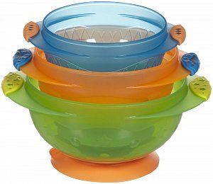 Чудовий набір тарілок! Присоски тримаються на столі дуже надійно, і їжа не перевертається.