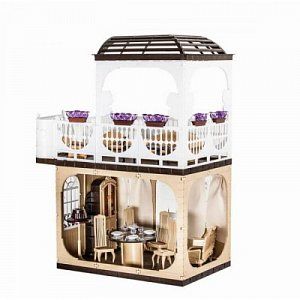 Стена с окном - 2 шт.;Решетка декоративная - 2 шт.;Карниз для штор - 2 шт.;Панель пола - 4 шт.;Стена без окна - 2 шт.;Стена с дверью - 1 шт.;Деталь фасада - 4 шт.;Планка - 2 шт.;Защелка - 48 шт.;Опора левая - 2 шт.;Опора правая - 2 шт.;Парапет - 6 шт.;Основание балкона - 1 шт.;Парапет полукруглый - 1 шт.;Навес - 1 шт.;Лестница - 2 шт.;Перила нижние правые - 1 шт.;Перила верхние правые - 1 шт.;Перила нижние левые - 1 шт.;Перила верхние левые - 1 шт.;Ящик для цветов - 2 шт.;Цветы - 6 шт.;Блок аппликаций - 1 шт.Дополнительные характеристики: