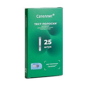 Сателлит Тест-полоски 25 шт. Одни из самых доступных на российском рынке тест-полосок к глюкометру Элта Сателлит. Определение уровня глюкозы в тест-полосках основано на электрохимическом методе. Каждая полоска служит для проведения одного измерения.